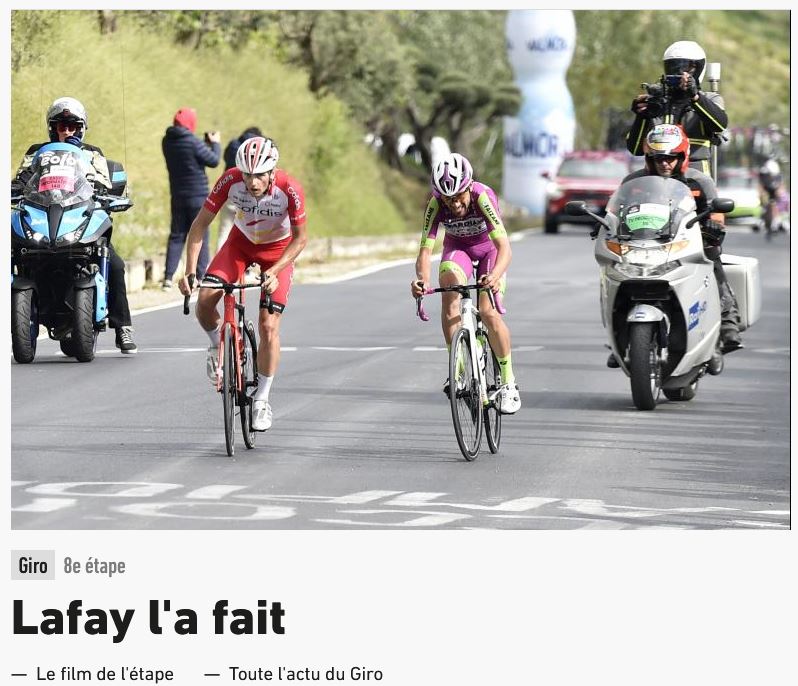 dgege a écrit:Ouais, dernier km monstrueux... j'ai eu mal au cœur pour les 2 échappés qui se sont fait enrhumer à quelques centaines de mètres de l'arrivée !![]()