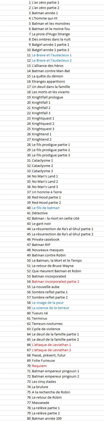 Il manque 2-3 récits à mon gout (Arkham Asylum de Grant Morrison, Mad Love de Paul Dini, entre autre). Mais les dernier tomes de la collection n'ont pas encore été annoncés.