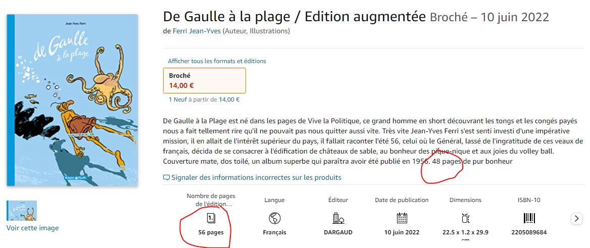 Dans "détails de l'ouvrage" il est indiqué 56 pages.Genug a écrit:S'il fait bien 48 pages je vois pas bien où est l'augmentation, c'est moins que