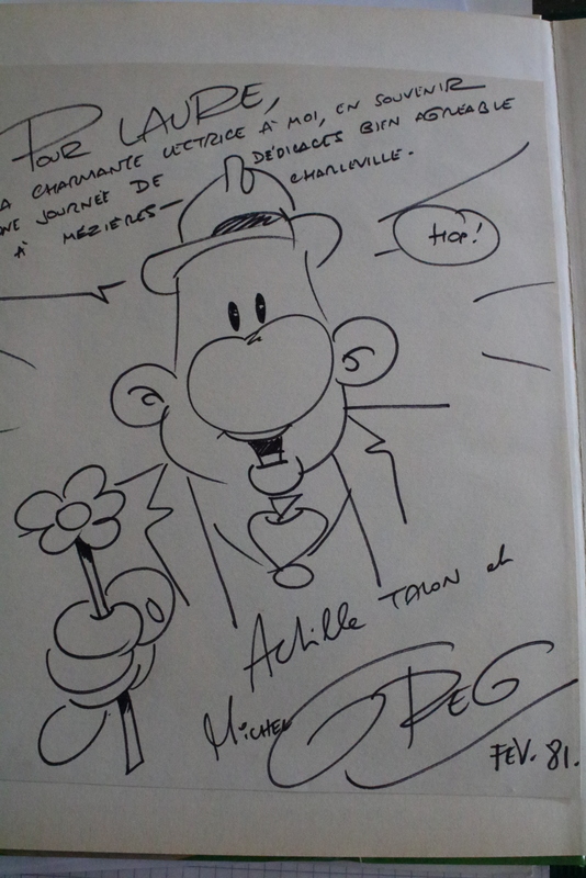 Fanbd21 a écrit:En recensant tous les albums dédicacés pour mon autre sujet, j'ai retrouvé une réédition d'Achille Talon avec une dédicace de Greg sur papier libre collée à l'intérieur, vielle de 40 ans. Je ne connais pas l'histoire de cette dédicace. Je ne sais pas qui est cette Laure de Mezières Charleville ( ? )