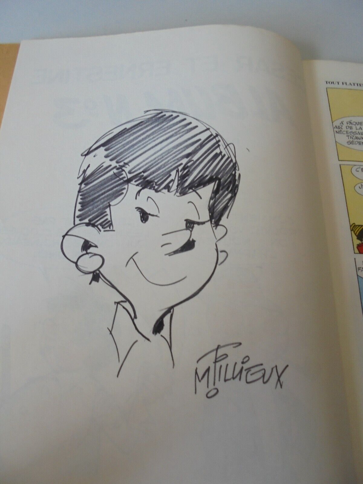 Même si la photo est floue, il ne fait guère de doutes que la dédicace est authentique. On reconnait parfaitement son trait.