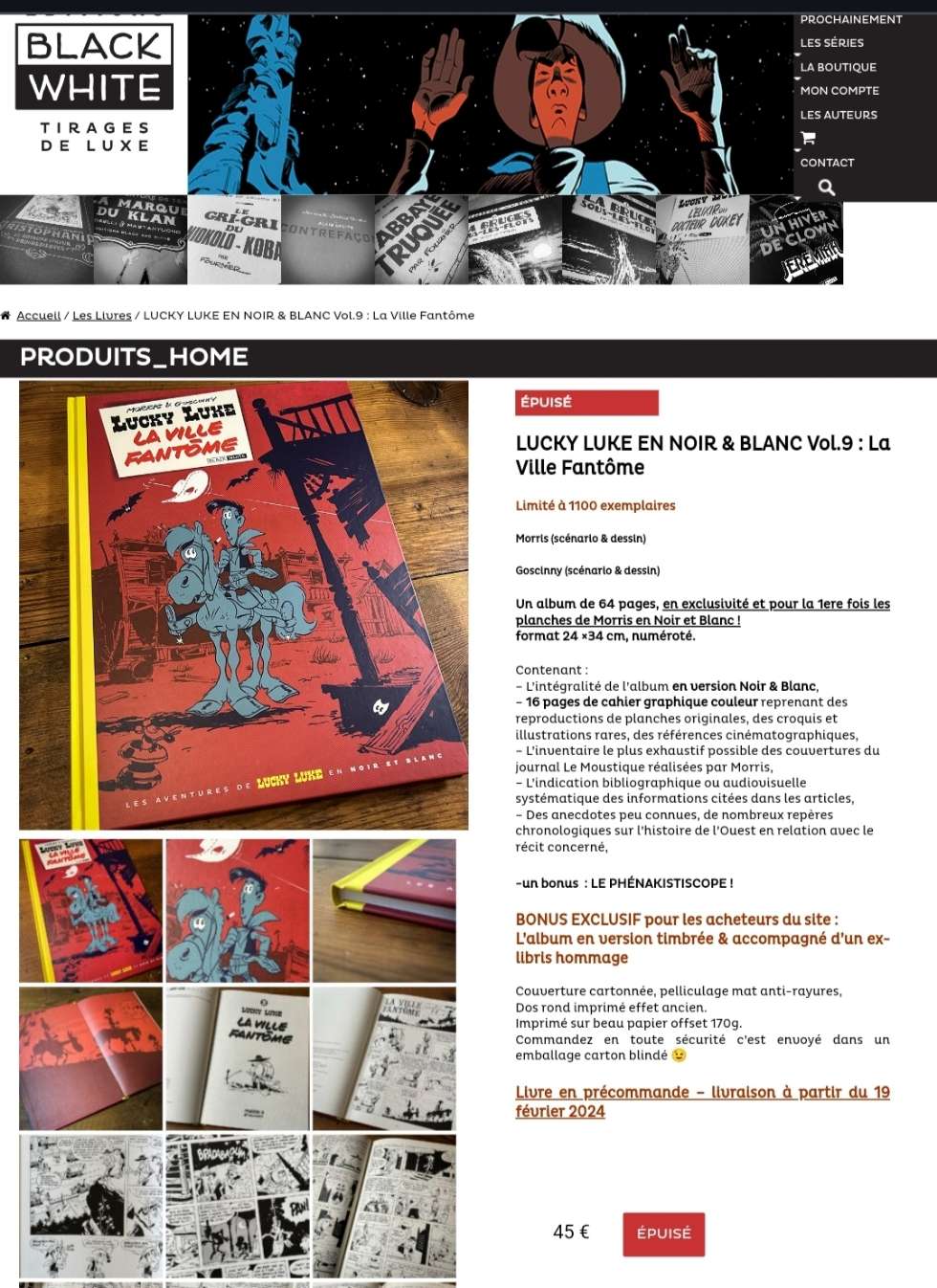 pack fantôme.Compte tenu du succès croissant de cette collection (qui n'intéressait au début que les aficionados, puis qui a attiré les spéculateurs à partir du 4e ou 5e tome) on peut se poser la question de savoir si B&W ne devrait pas augmenter une fois de plus le tirage (initialement de 950 exemplaires, il est passé à 1.100 exemplaires avec Le Juge, me semble-t-il ?) pour le porter à 1.500 ?