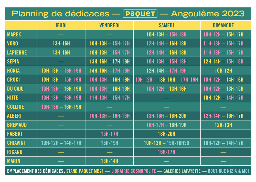 pol a écrit:Pour les dédicaces sur le stand, achat sur place, titre au choix.