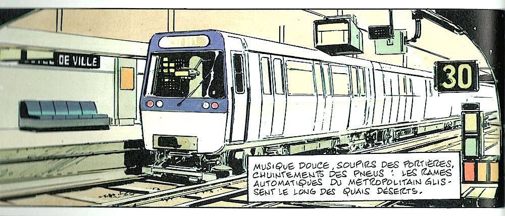 lusabets a écrit:Vers 1987, Paul Gillon imaginait un métro automatique, ligne 1 (ce qui a été fait !), pour un futur apocalyptique de Paris,