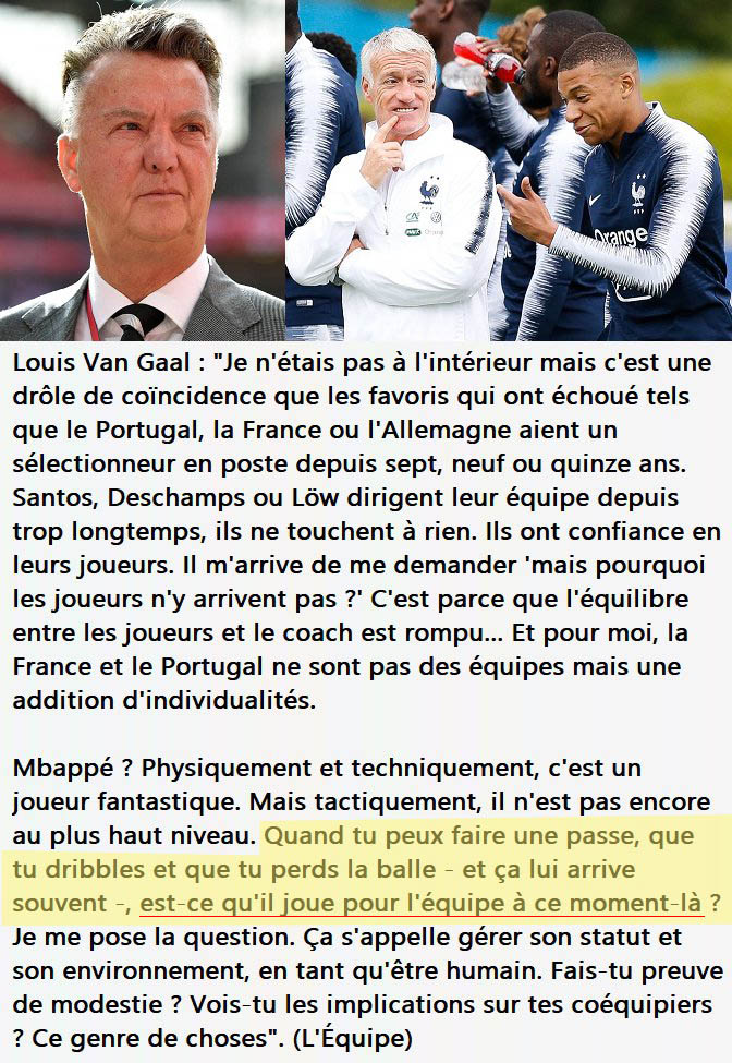 Les constats de Van Gaal, on les a tous faits. Après sur questions qu'il pose, il prend bien soin de pas en expliciter les réponses