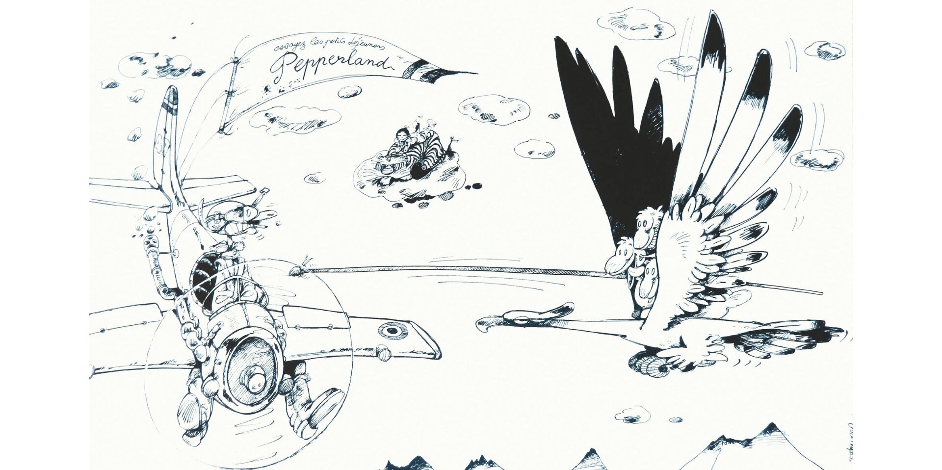 Un dessin (connu - déclinaison d'une page du Génie pour la librairie Pepperland) en vente aux enchères ces jours-ci :