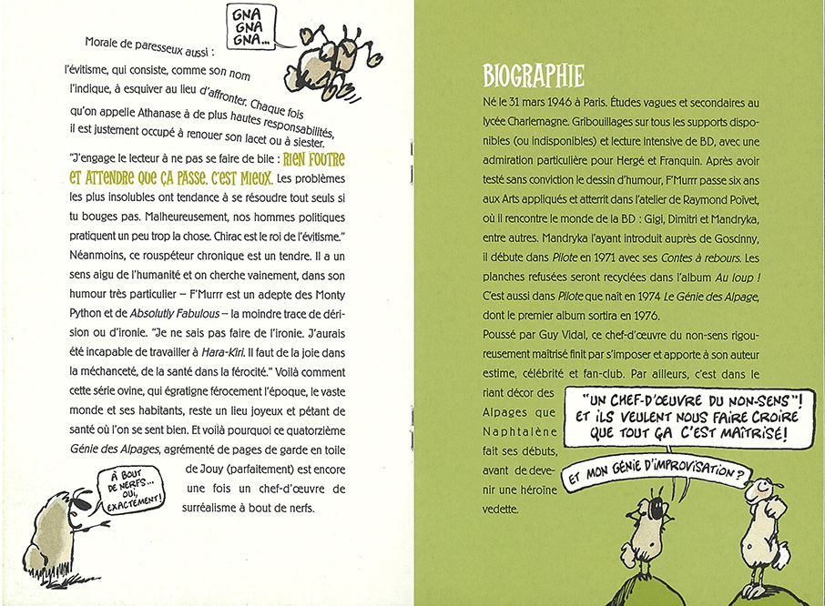 Vainsy a écrit:Il faut que j'y réfléchisse un peu plus mais j'ai bien peur qu'étant unique, Il en demeure éternellement irremplaçable (ce qui est très bien comme ça, tout bien considéré). Il faisait partie de ces auteurs tellement en marge, avec une empreinte tellement forte, qu'on imagine mal la génération suivante s'en inspirer frontalement (Reiser, Binet, Bretécher... n'ont pas non plus eu de véritables héritiers, spas ?)