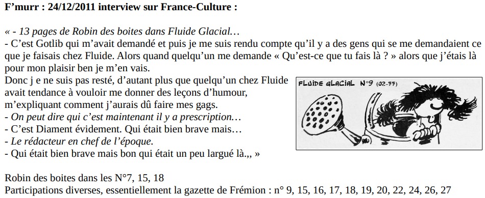Jean-Christophe Menu : Oui, F’Murr est venu cette fois-là, et ensuite il a dit que Thierry Groensteen était un instit’, Anne Baraou une infirmière, et qu’il ne reviendrait plus !