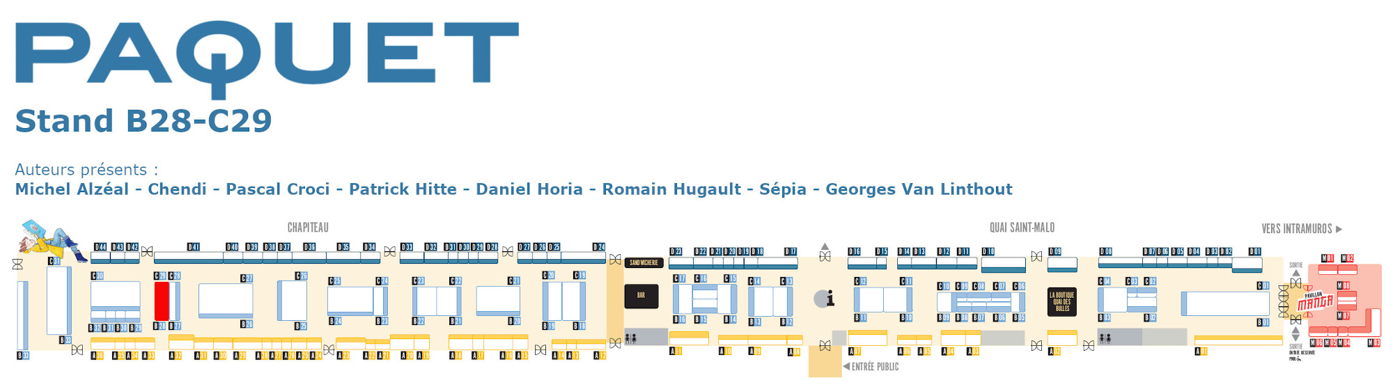 - Rendez-vous une heure avant le créneau de dédicace sur le stand pour distribution de billets pour un tirage au sort.