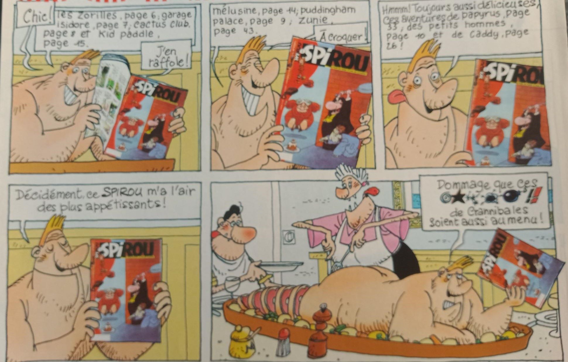 Il y rencontre donc Charles Dupuis, éditeur (Carlos), Michel Dupuis (Miguel dit Toujours Prêt), Jean-Luc Dupuis (Juan-Luca dit Le Fils de), Alain De Kuyssche, rédac-chef Spirou (Alanus dit 2 Cuisses), Freddy Monnickendam (Freddy dit le Hollandais volant) et José Dutilleu (José dit le pur génie).