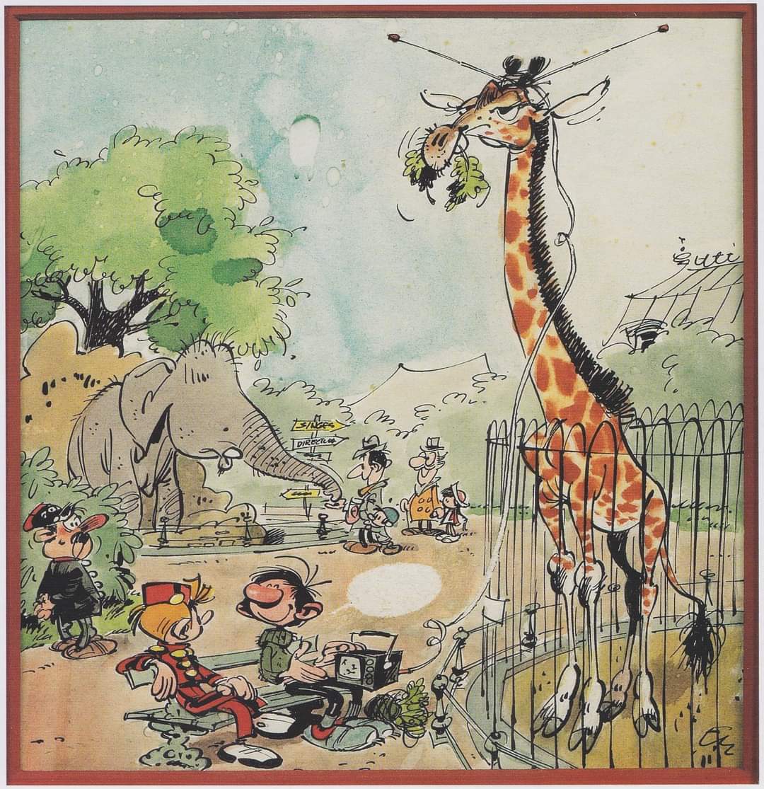 friks a écrit:Arsen33 a sans doute de la famille du côté du Père Heuydelinx?... Mais Gaston ou Spirou doivent jeter du feuillage à la girafe par dessus la barrière...