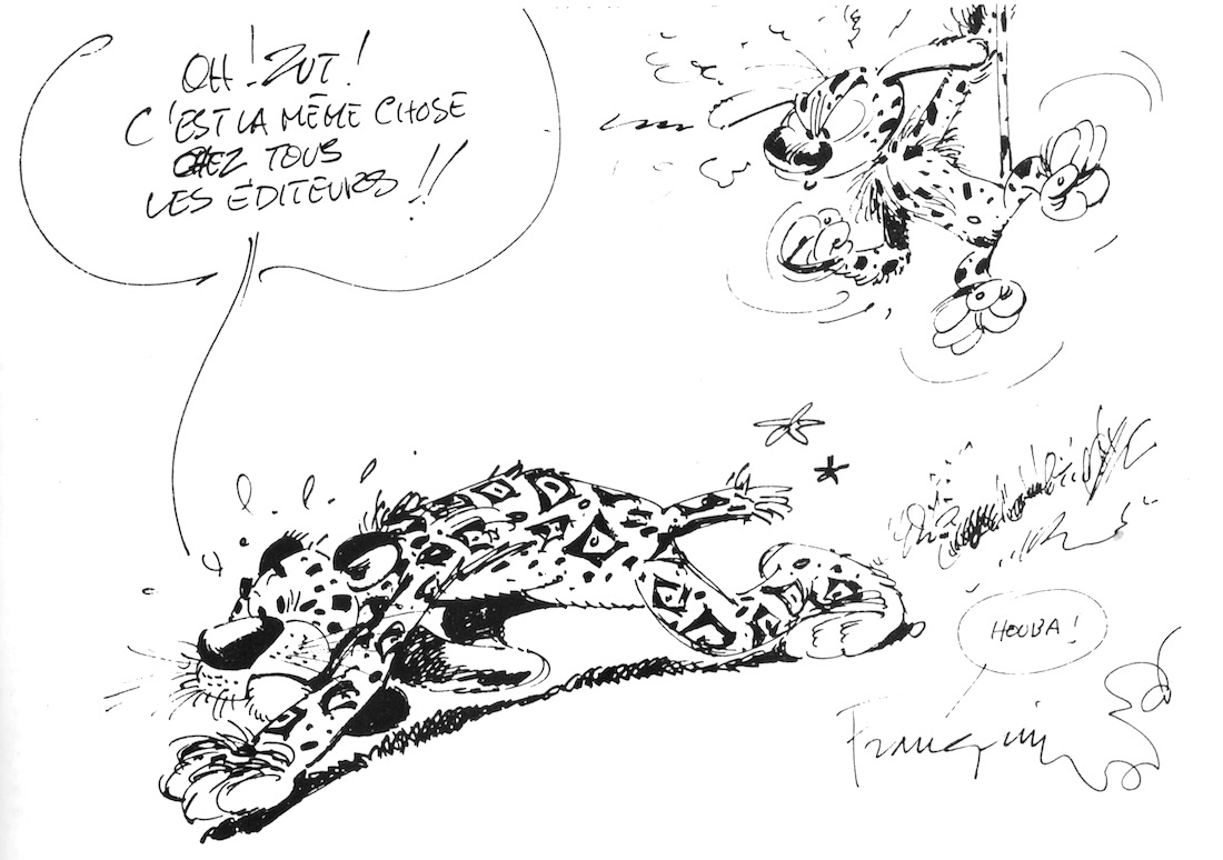 Avant de lire son entretien avec Sadoul, j'avais déjà remarqué depuis longtemps la maestria de Franquin dans cet exercice graphique, notamment dans Le Nid du Marsupilami que mes grands-parents m'avaient gentiment offert vers mes 8 ou 9 ans (la série d'albums édités vers 1966, même si on me l'a acheté quelques années plus tard) avec au 4e plat des visuels sur les Gaston à l'italienne.