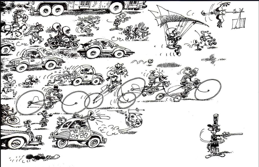 zourbi le grec a écrit:Non franchement ce Franquin, il savait pas dessiner les véhicules. Aucune voiture n'est reconnaissable et même pas foutu de dessiner des roues rondes avec ça.
