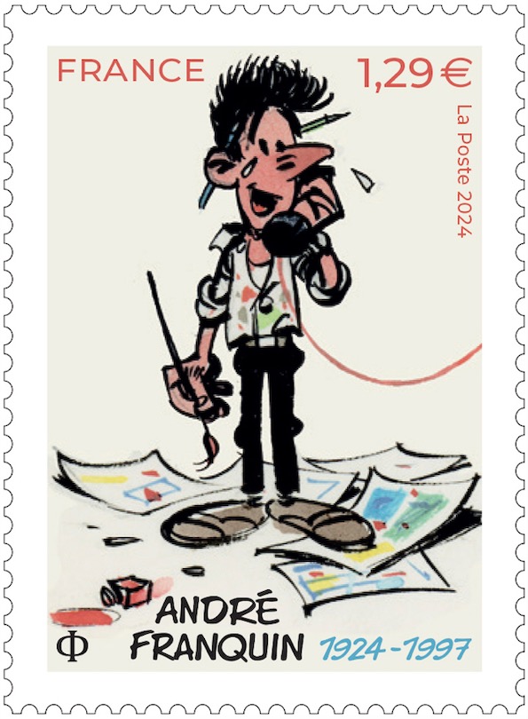 Pour les ceusses qui écrivent encore (je veux parler de courrier postal) n'oubliez pas qu'il existe un timbre-poste en France avec André Franquin. Ce timbre est toujours en vente actuellement.
