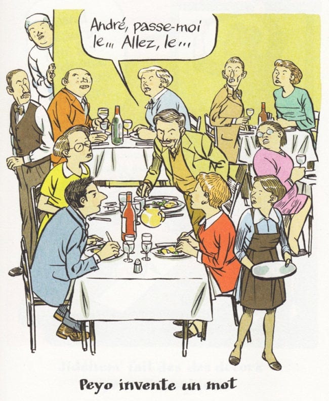 Dans mon souvenir de lecture de je ne sais plus quelle interview de Franquin, la scène du processus créatif des Schtroumpfs se passait dans un restau bruxellois, alors que le dessin de Bédu suggère davantage un intérieur privé. Petite erreur ? (de toutes façons sans importance)