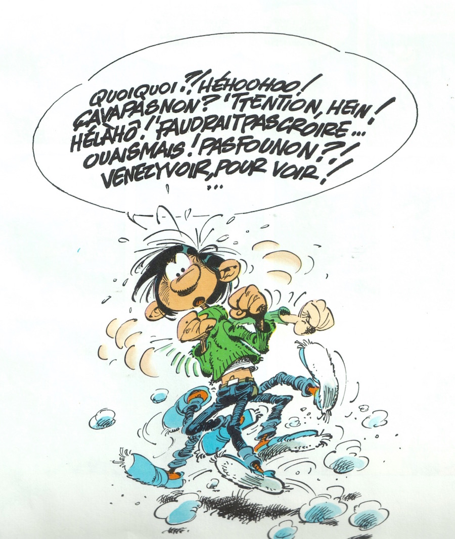 Mais quel plaisir un amateur de Gaston pourrait-il trouver à ce degré suprême du plagiat qu'est cet exercice de mise en scène de Gaston en tirant chacun des dessins du recopiage d'un dessin préexistant de Franquin et en agençant ces vignettes Rank Xerox selon un scénario "à la Ferri", où l'on garde tous les tics et conventions extérieurs de la narration franquinienne faute de pouvoir en conserver l'esprit et la verve qui n'appartiennent inévitablement qu'à l'auteur ?