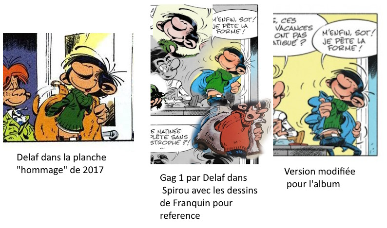 Brian Addav a écrit:Non non je parle de la main gauche... celle qui tient le pan gauche du blouson, qu'on voit chez Lebrac, chez le premier Gaston de Delaf (un poil mal positionnée), sur le second Gaston, et qui change dans la version finale pour disparaître et être remplacée par une autre attitude.