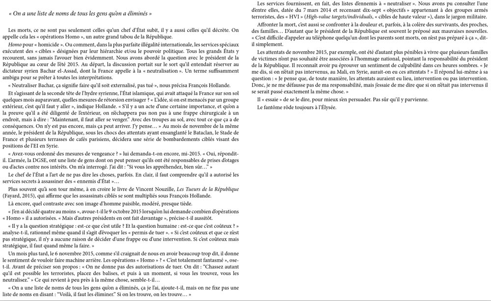 Hollande, dans le bouquin, il raconte juste ce que c'est d'être président. Et c'est très intéressant à ce titre.