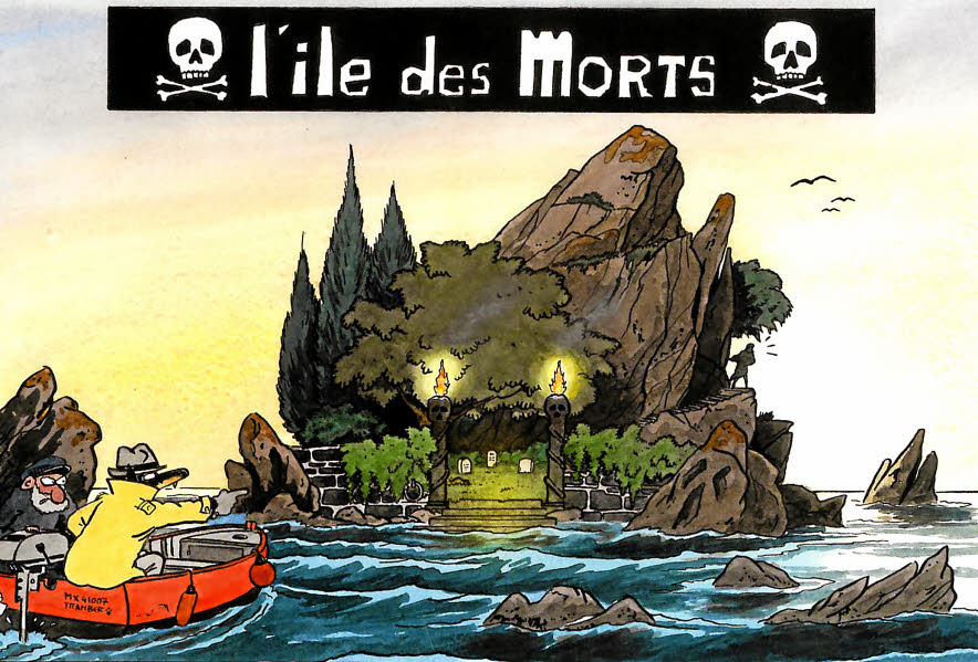 Dans cette case de de Broussaille, la référence à la toile "L'Île des Morts" n'est pas aussi explicite que le livre dans les rayonnages, mais pour moi elle est évidente.
