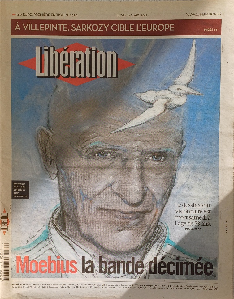 Le libé du lundi 12 mars 2012. Hommage à Moebius par Bilal.