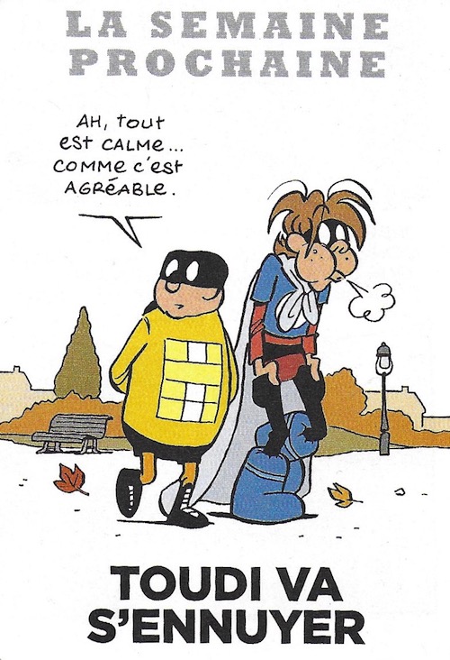 petercriss a écrit:Notre Héros est de retour la semaine prochaine dans le SPIROU N° 4155 du Mercredi 29 NOVEMBRE 2017: