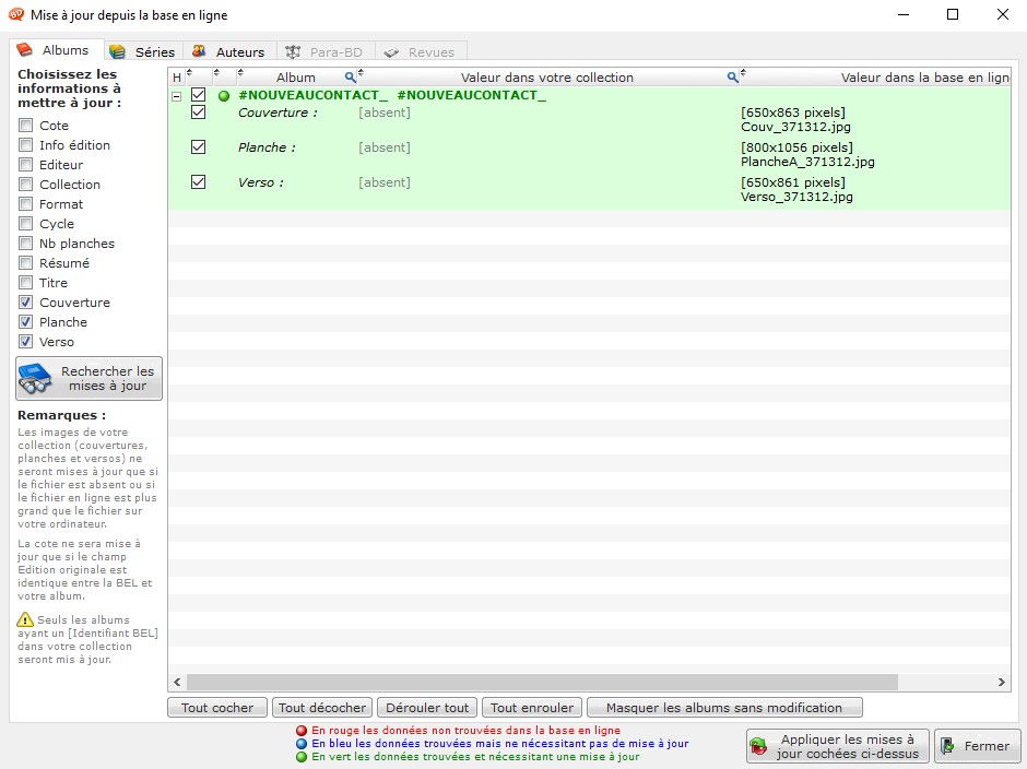 mais si je clique sur couverture, planche ou verso, rien ne se passe