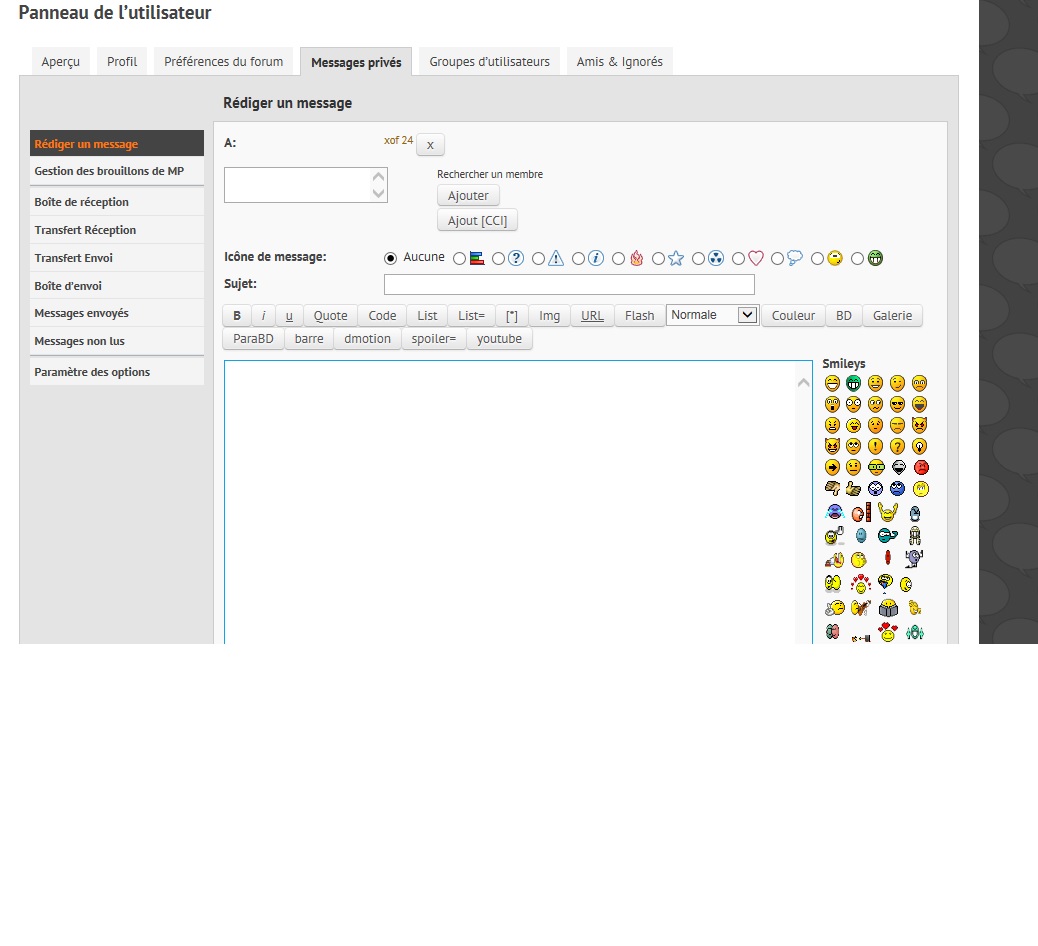 la fenêtre ne bouge pas, le message ne part pas ...