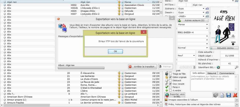 Depuis que j'ai transféré ma base perso sur un ordinateur sous Windows 8, je n'arrive plus à exporter ni album, ni revue : j'obtiens régulièrement le même mesage : "Erreur FTP..." (voir image jointe).