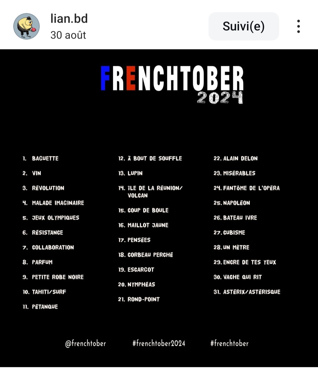 Voilà la liste de cette année :