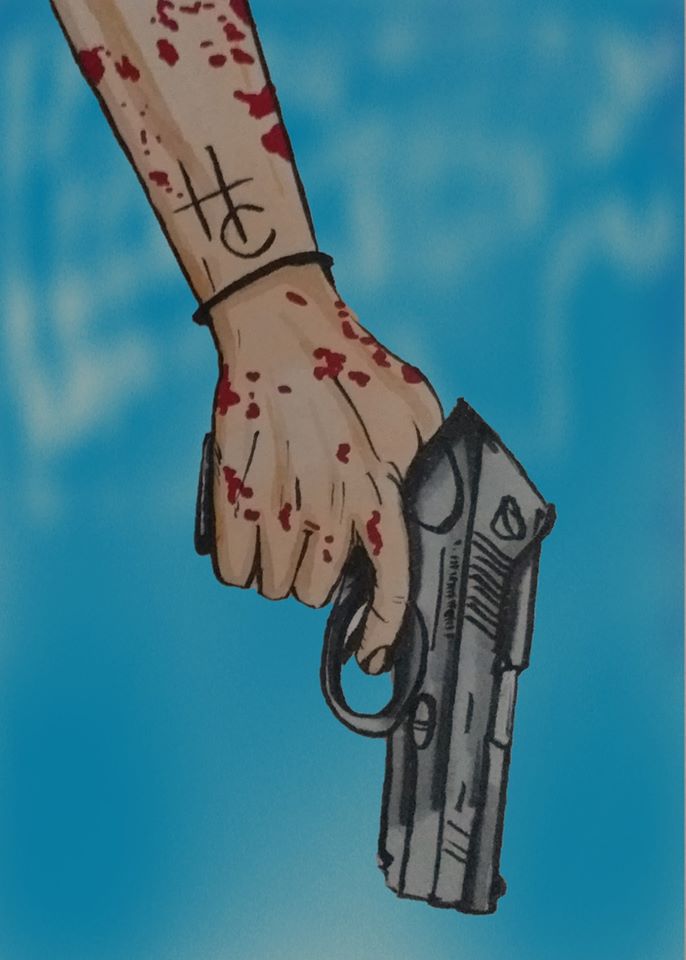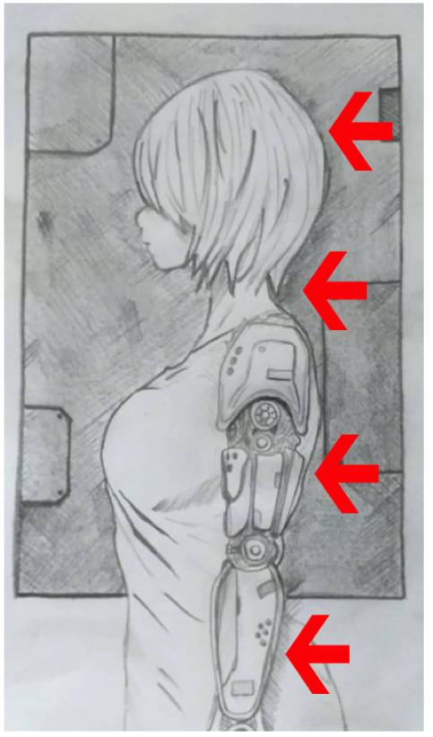 n'avait pas de côté droit du corps et qu'il était collé sur la plaque métallique. Surtout que cette ombre est projetée, aussi bien sur le mur en métal que sur le vêtement du personnage.