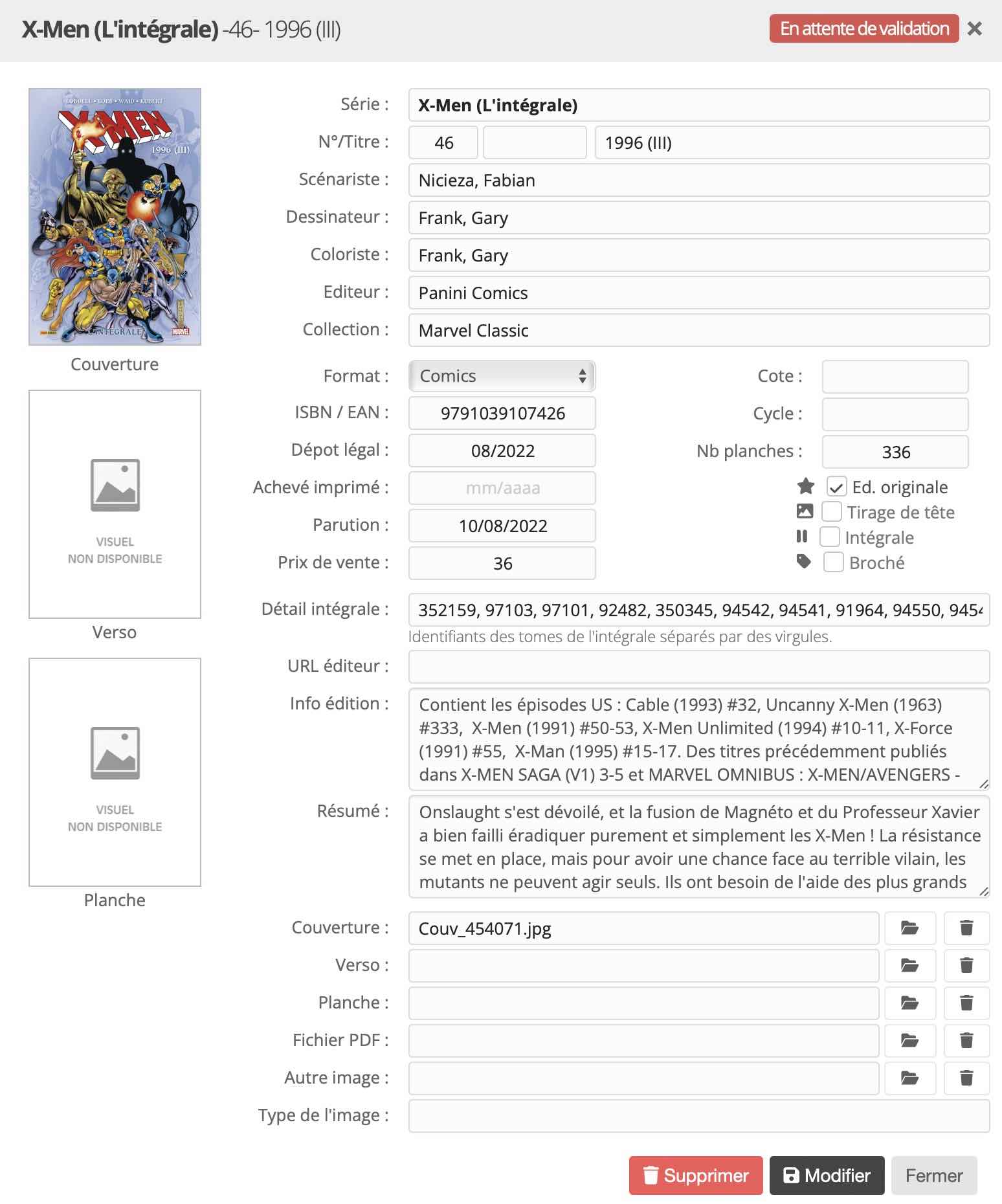 Par contre, j'ai bien mis toutes les références ID aux comics d'origine - donc traçabilité exhaustive.