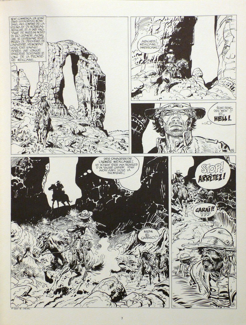 Tu remarqueras aussi que certaines fautes restent dans le TT comme des accents en trop (sur le E de "Mexique", "mexicain", "mexicaine"...), accents qui ont été supprimés pour l'édition en albums - sauf pour ce TT ! -, alors qu'ils restent aussi dans la version en pré-publication dans Pilote en 1970... Mais le TT, lui, a donc toujours les fautes, comme quoi l'éditeur n'a pas voulu se fouler (à moins qu'il ait voulu montrer les planches dans leur intégrité, y compris les fautes dans les textes...? Mouais... Du coup, aucun regret de ne pas avoir ce TT, car je n'aime pas les albums avec des fautes dans les textes).