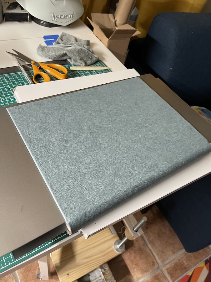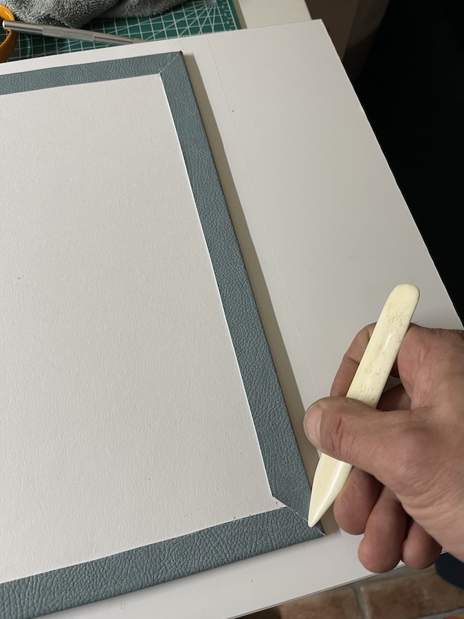 On les ajuste et on les colle en veillant bien à les maroufler. Bien sur on met sous toles et sous poids pour séchage.
