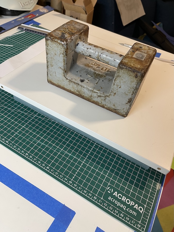 Sans le livre , on plie correctement la garde et avec deux feuilles , on prépare celle de dessus afin d'encoller que un demi cm du bord coté livre.