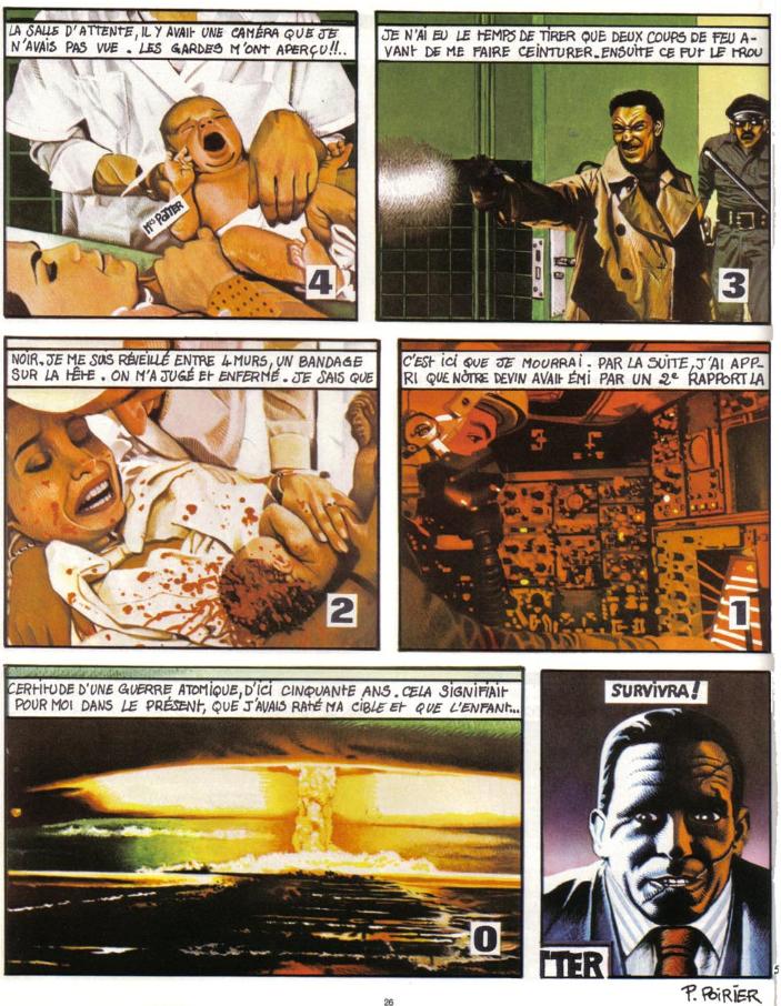 Je suis à la recherche d'un "truc" paru dans Metal Hurlant (il me semble bien) dans les années 80 (première moitié). Je ne sais pas si cela a été édité par la suite sous forme de BD, mais je me souviens d'un dessin ultra réaliste avec un bombardier américain qui balançait la bombe et également une naissance... Un truc à la Metal Hurlant quoi, sous font de guerre froide pure et dure, très culture années 80...