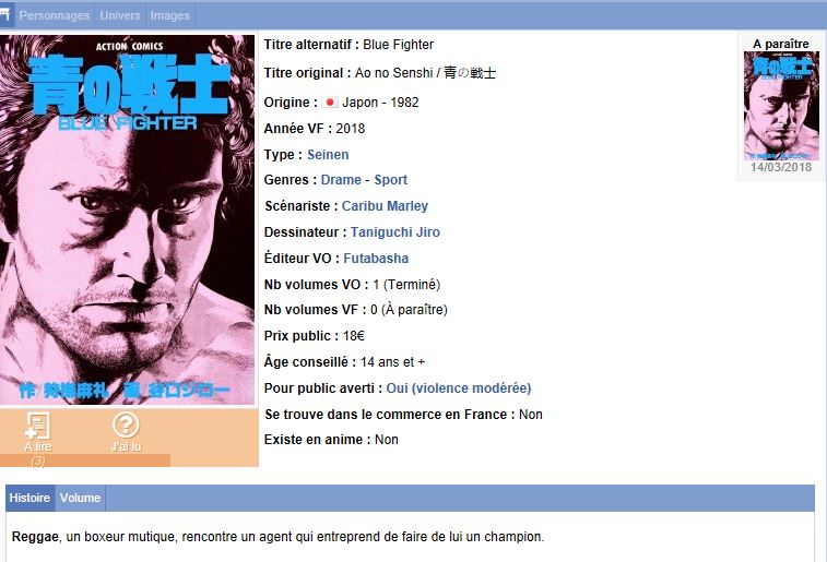 Diddu a écrit:Quelqu'un sait-il si Casterman a un jour prévu d'éditer le 5ème et dernier tome de la série Au temps de Botchan, dans la collection Ecritures ?