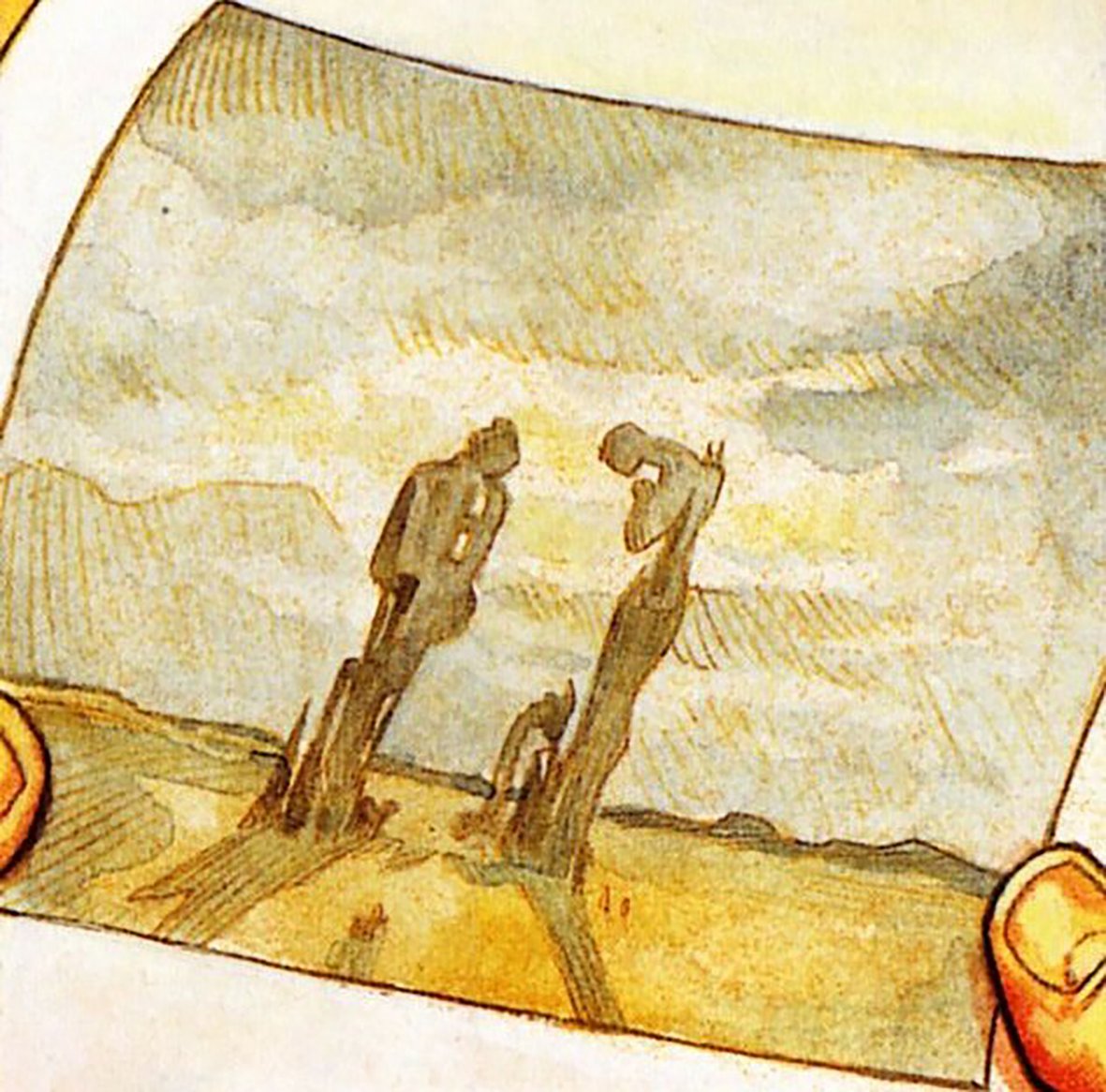 Alors, bien sûr, il y aura la 5e planche, celle avec le rhinocéros. C'est sur ce genre de représentation précisément que je dis que Baudoin mixe son style avec celui de Dali, en créant des angelus que Dali aurait pu peindre. Mais ce magnifique rhinocéros de la planche 5, avec le couple de l'angélus n'émane pas d'une peinture de Dali. Il n'a jamais représenté l'angélus avec un rhinocéros. Je suis une spécialiste de la place de L'Angélus dans l'oeuvre de Dali. Et je puis affirmer de manière certaine qu'il n'y en a pas (d'angélus avec un rhinocéros).