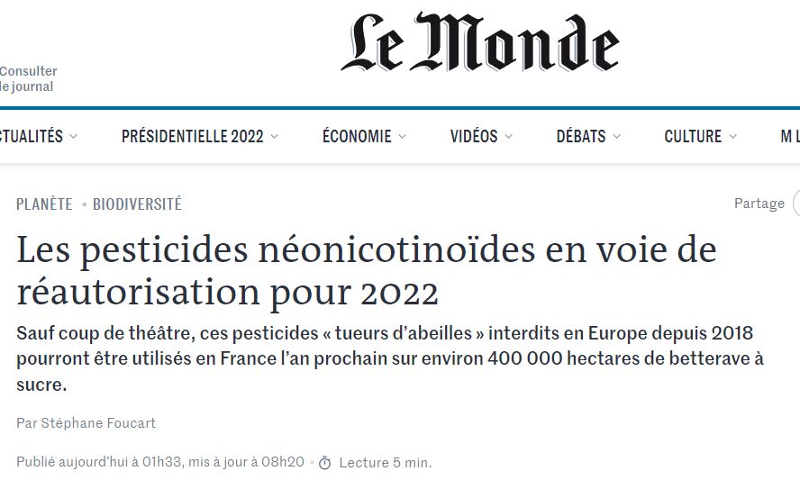 lemonde a écrit:Jacques Caplat critique quant à lui un recours aux néonicotinoïdes qui « s’apparente à une assurance », motivée par les fortes tensions provoquées sur l’ensemble de la filière par la fin des quotas sucriers, fin 2017, qui a fait plonger les cours européens du sucre. Ceux-ci sont passés d’environ 500 euros la tonne à l’été 2017, à environ 300 euros en février 2019. Ils remontent désormais, assure le ministère de l’agriculture dans sa note de synthèse, et se situaient en septembre à environ 408 euros la tonne. « En réautorisant les néonicotinoïdes, on est dans une situation absurde où l’on cherche des solutions agronomiques destructrices à des problèmes économiques qui ont été créés de toutes pièces, pour des raisons purement idéologiques »