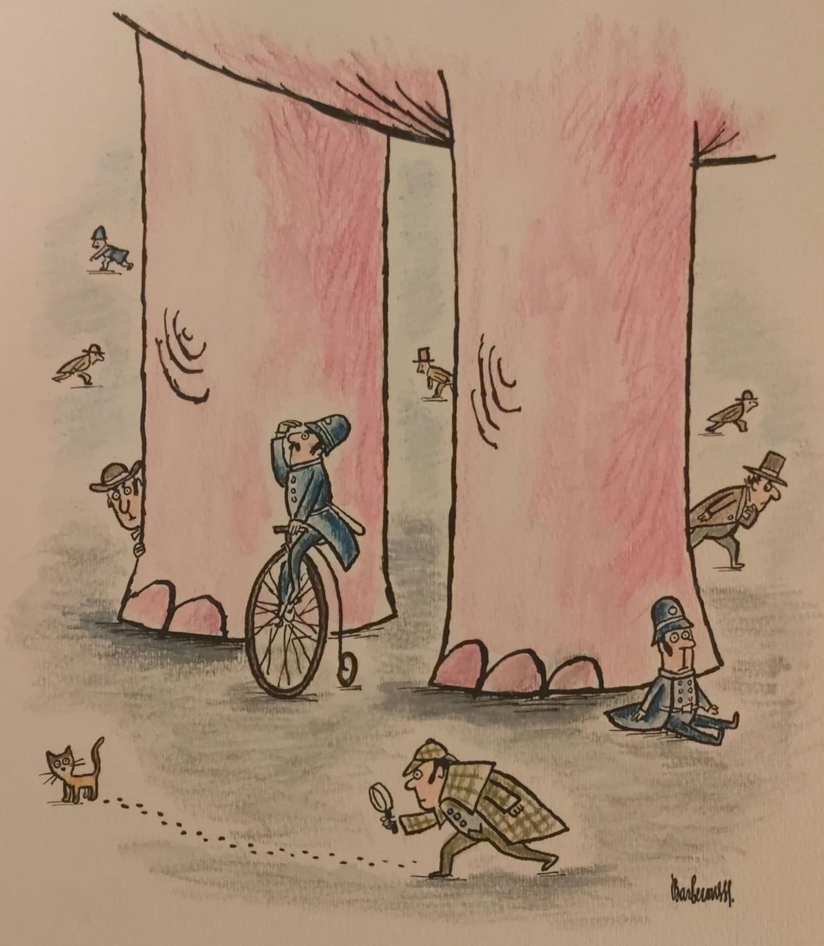 Bonjour, je possède ce très joli dessin de Barberousse. Il semble faire partie d'une histoire pour enfant sur la recherche d'un éléphant rose. Malheureusement, je ne connais pas cette publication.