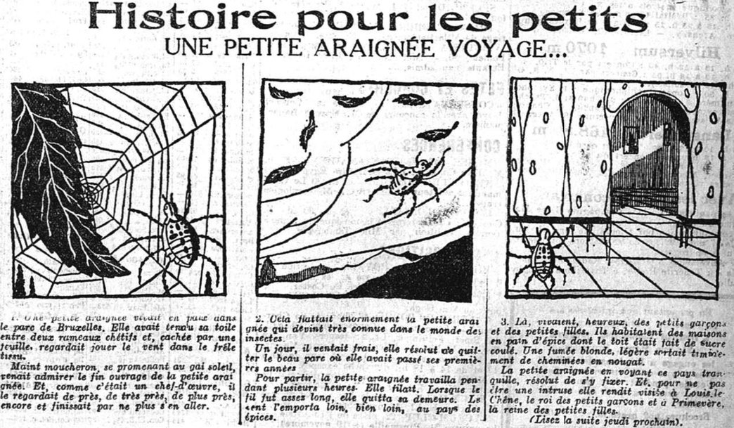 Oui il s’agit bien d'Hergé le 17 novembre 1927 dans le XXème siècle avec une histoire en image dont le texte est de René Verhagen. Le premier indice aurait été de vous préciser que l'araignée en question était une arraneus diadematus (plus communément épeire diadème ou épeire porte-croix) pour vous orienter vers le côté chrétien de l'auteur.