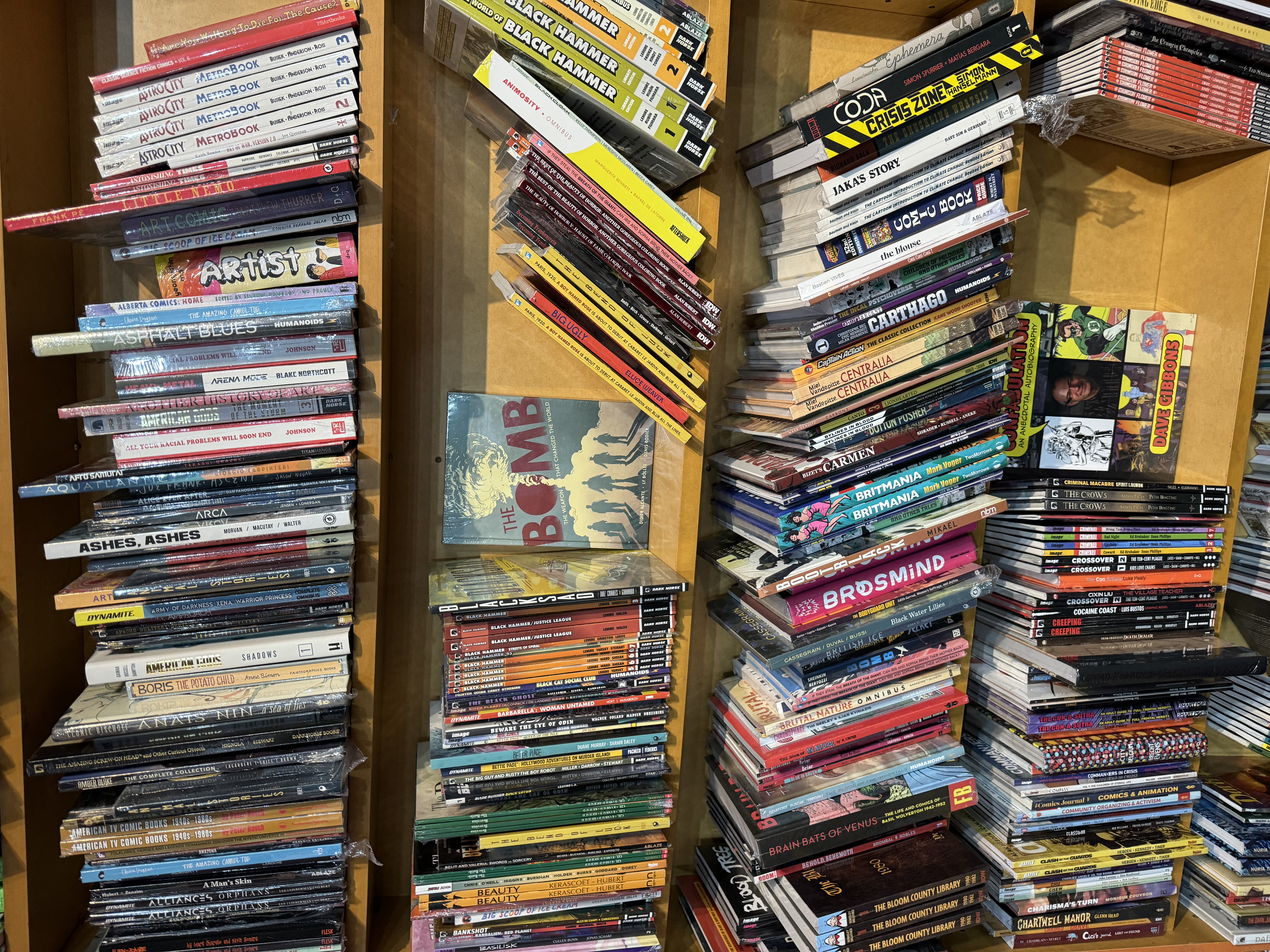 Finalement j’ai quand même trouvé des Astérix et des Tintin, Blacksad et la Bombe. Ca reste exclusif