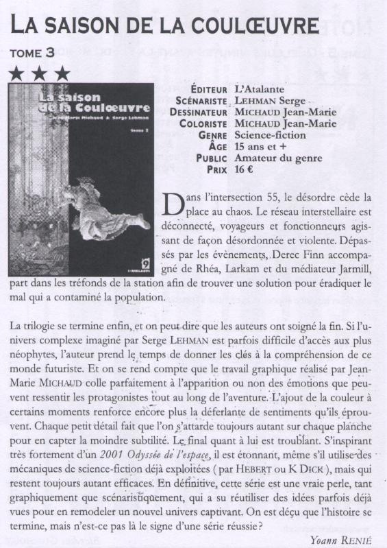 Je rigole aussi, croyant à une blague, mais en fait non. S'en suit une discussion très intéressante, où il m'a raconté que même s'il ne comprenait pas ce qu'il dessinait (scénaristiquement parlant), il avait bien aimé faire cette BD, grâce notamment à la liberté artistique que lui laissait Lehman. Bravo smilingdreamer !