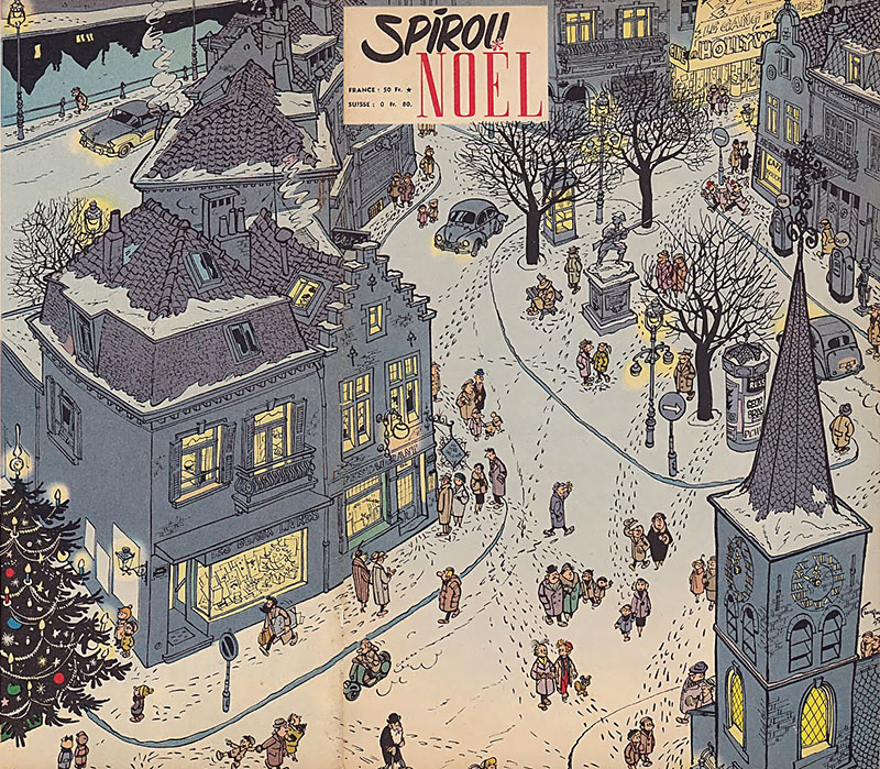 Mais au delà du noir et blanc, il n'est que de comparer dans les récits humoristiques du journal Spirou la façon de représenter le sol des chemins et des routes non bitumés. Les traits qui donnent leur consistance et leur relief à la terre (battue ou non). Vous y trouverez chez Peyo, Will, Franquin et plein d'autres, le même élément de vocabulaire graphique que chez Jijé.