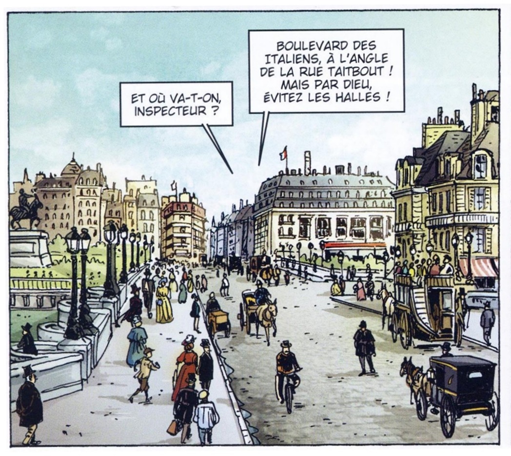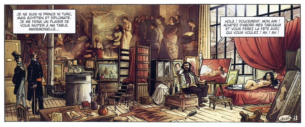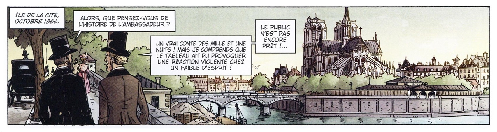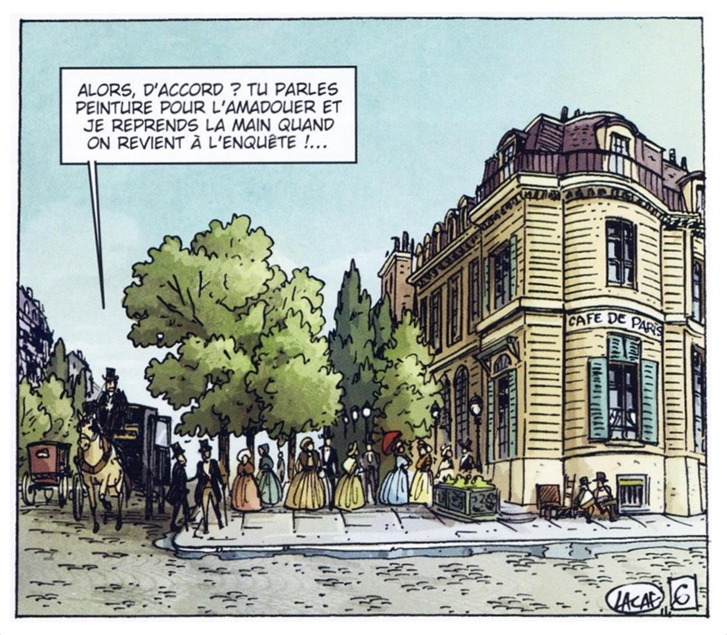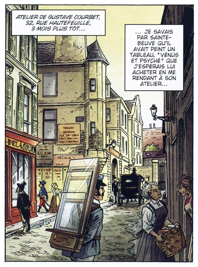 Comme le dit le personnage, nous sommes rue Hautefeuille, devant l'atelier de Courbet.