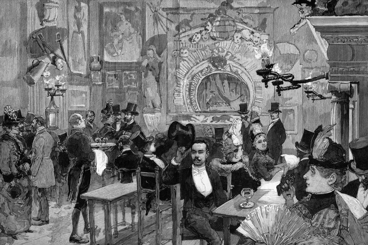 On reconnait ici la vue principale, avec la colonne Morris, et sur la droite un "Au Singe qui lit", devenu "Au Sage qui lit"