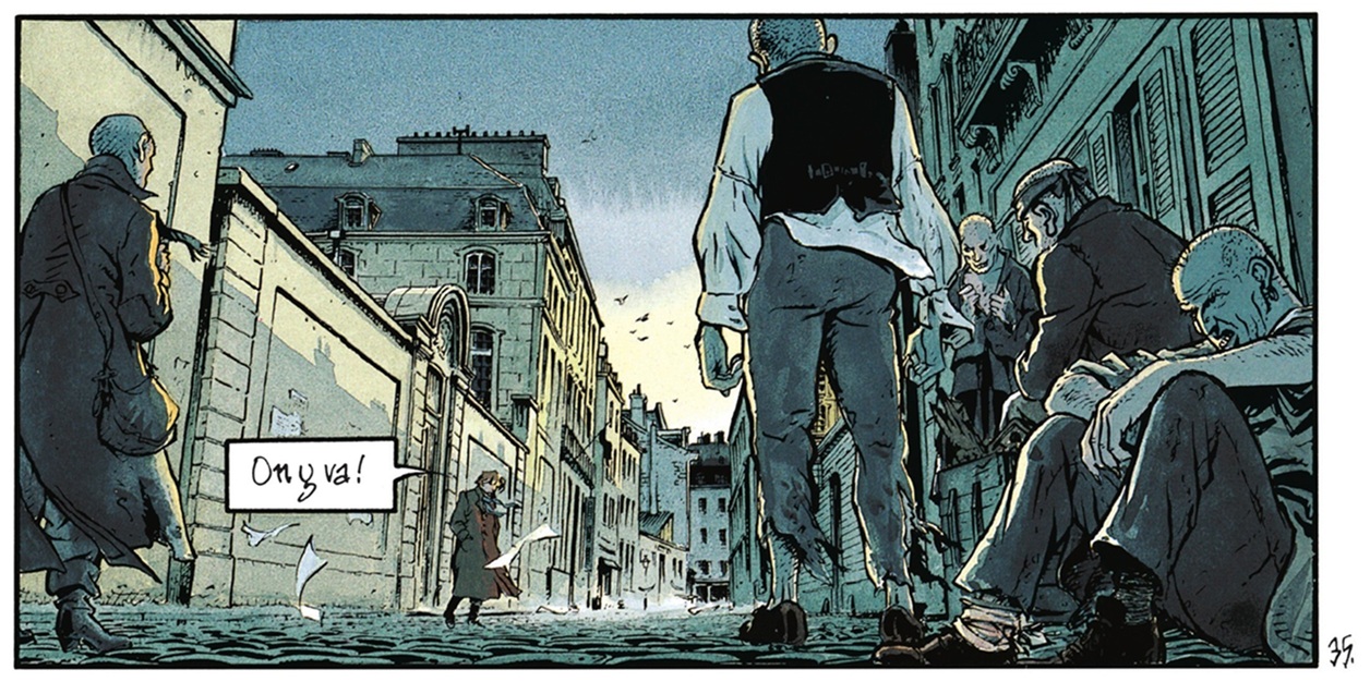 mais là, il copie même les personnages du tableau, au delà du décor pour lequel tableau et photos d'époque sont une iconographie nécessaire si on veut être réaliste