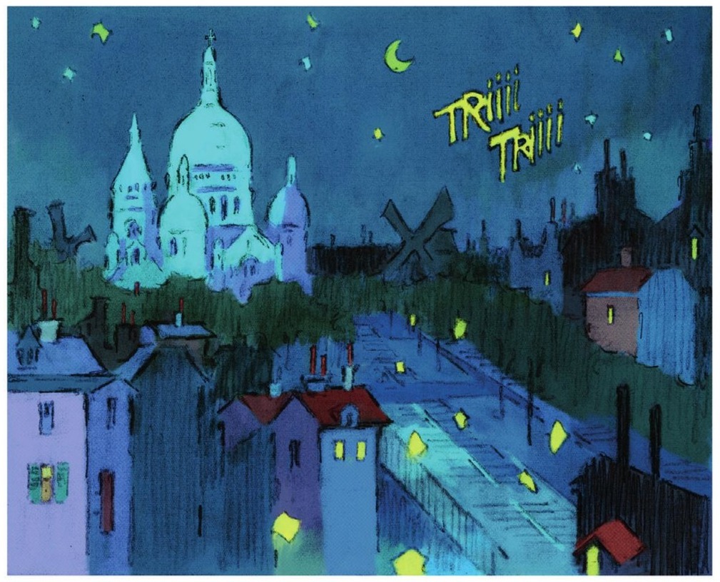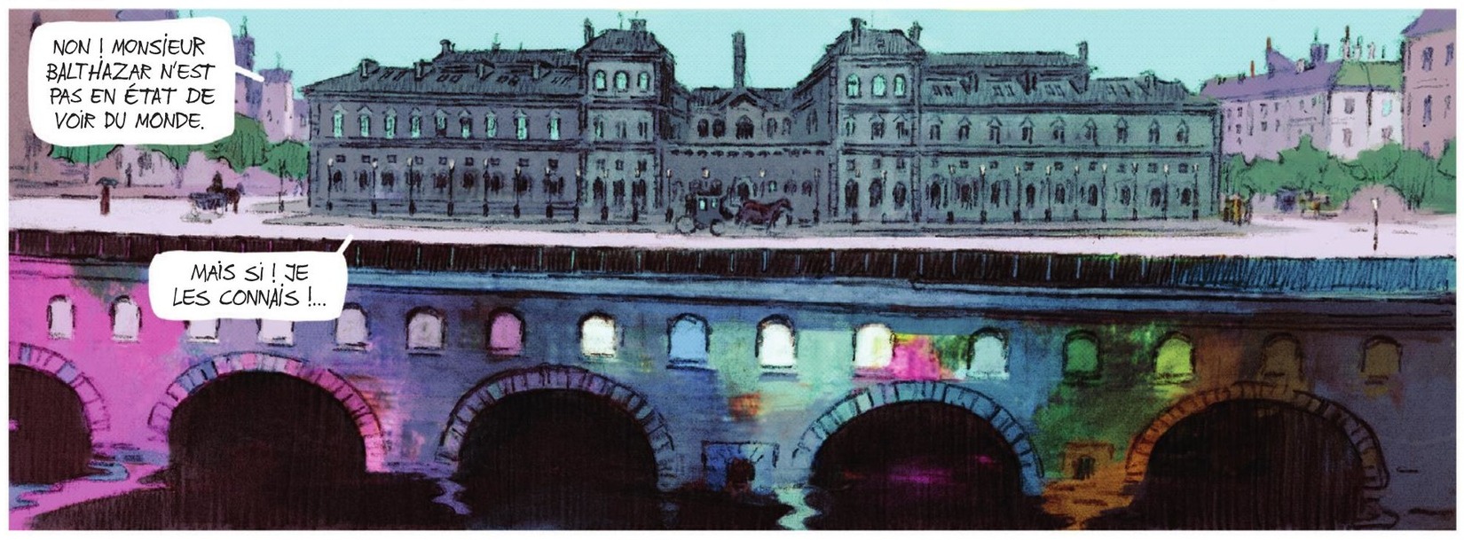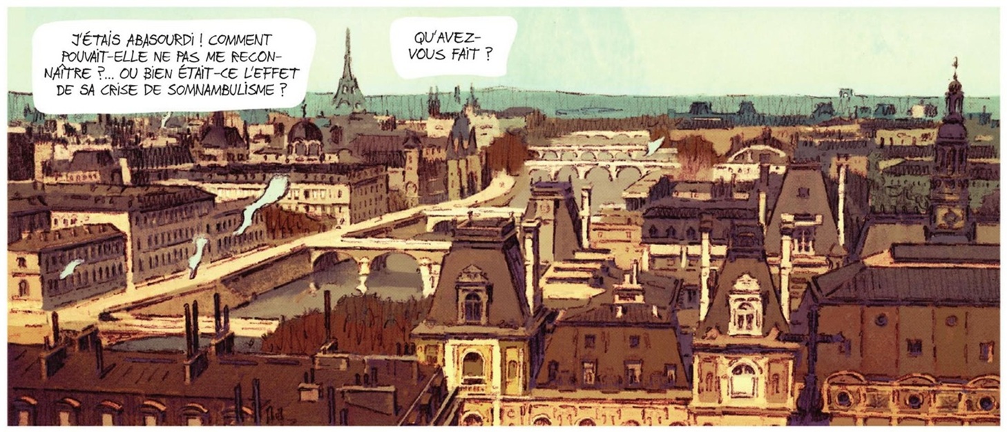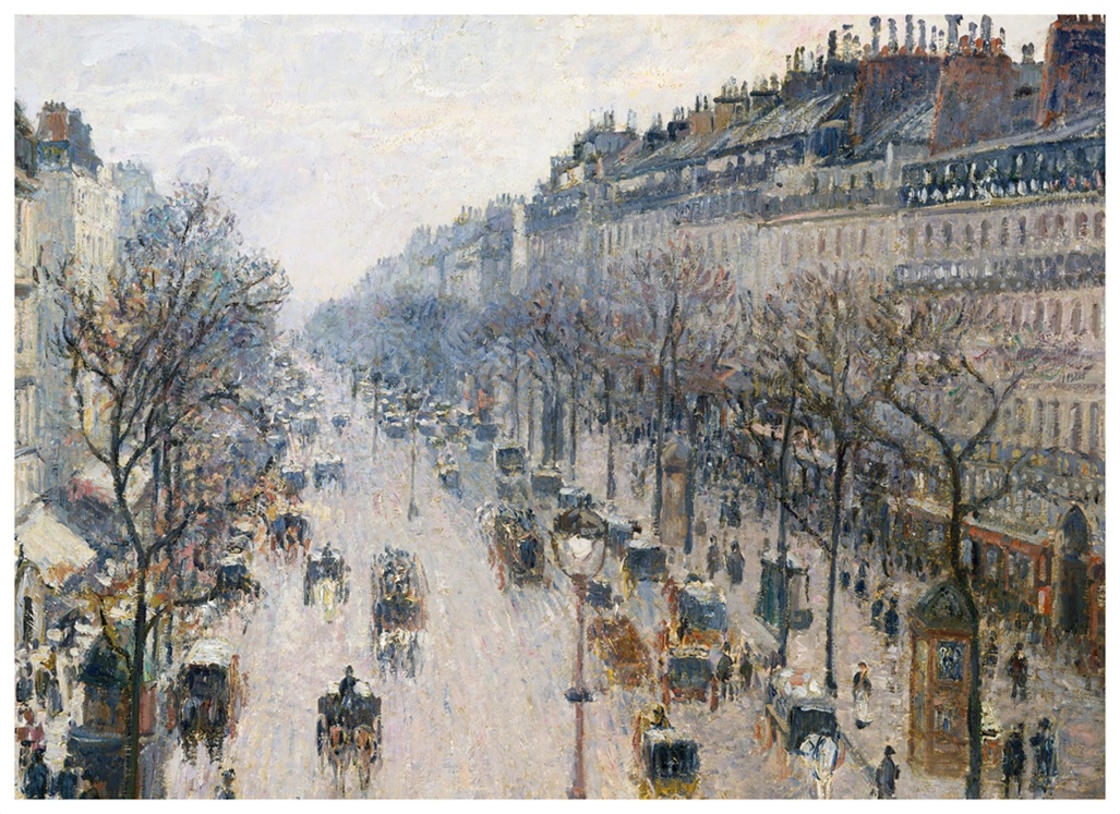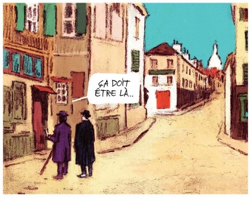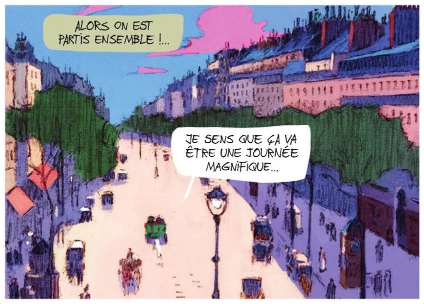 On voit que la calèche à droite est là même, déplacée de quelques mètres. Pas retrouvé les autres éléments (personnages, voitures) sur d'autres tableaux.