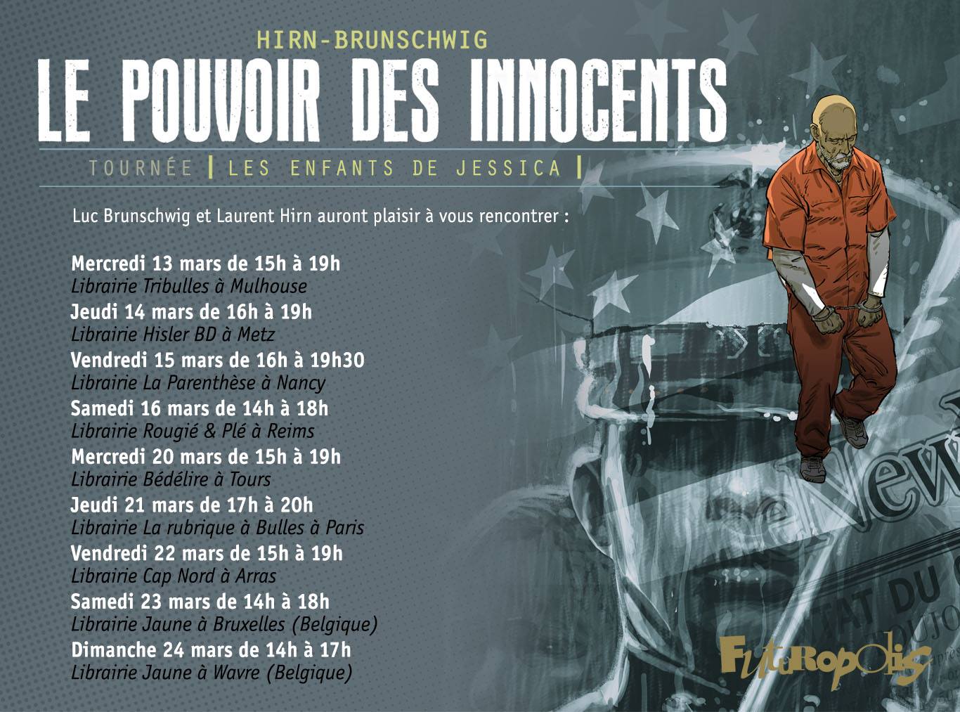 luc Brunschwig a écrit:La déception (je pense) aurait été l'arrêt des deux séries si on n'avait rien fait pour coordonner les séries entre elle et rappeler qu'il s'agit du Pouvoir des Innocents... en ça, Futuropolis a fait un choix courageux d'éditeur en pilonnant une grande quantité d'invendus pour revenir à une présentation plus apte à capter l'attention des anciens lecteurs (mission réussie)... les deux séries ayant été un gros échec commercial dans leur forme et leur nomination précédente