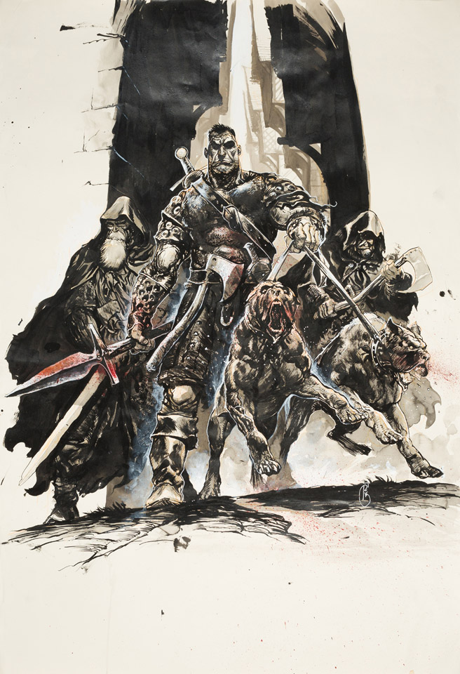 Sur quel format travailles-tu ces illustrations ? Celle avec les clebs était immense dans mes souvenirs (du style 1,5 mètre x 0,7 m)