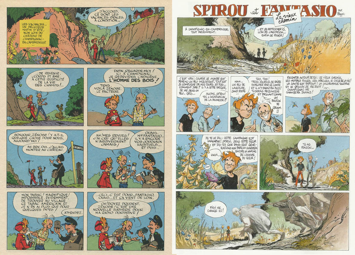 http://www.spirou.com/forum/viewtopic.p ... 301#p26301bdmaniac a écrit:- Le vieux chemin par Frank Pé : graphiquement on est bien éloigné du Spirou qui débutait le magazine avec un certain élan. Ensuite j'avoue ne pas tout comprendre pourquoi il y a plein de gris derrière eux. Et il m'a fallu une relecture pour comprendre la dernière bulle de Spirou. Bref j'avoue en être perplexe.